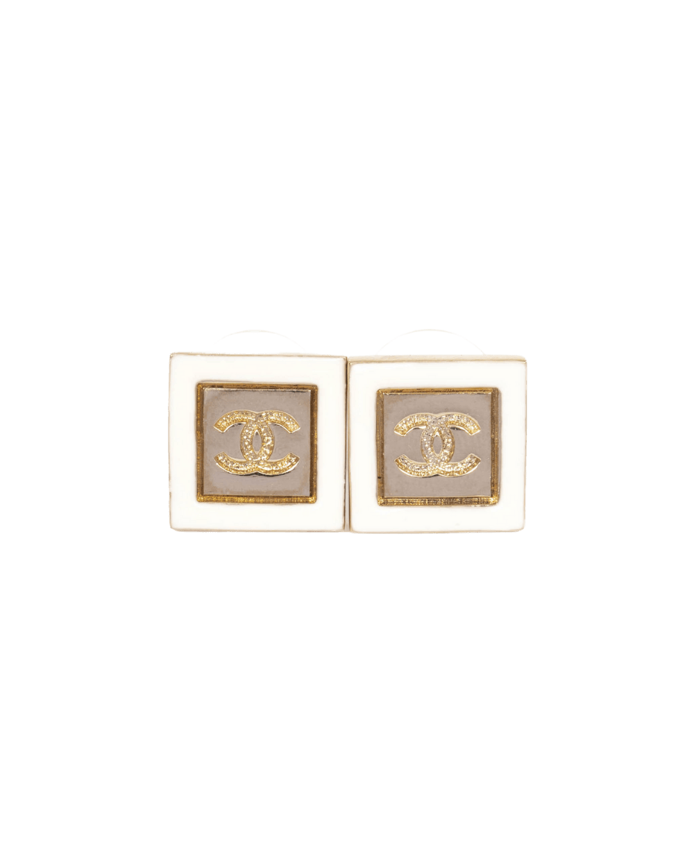 NEW CHANEL CC SQUARE EARRING PEARL GOLD GHW