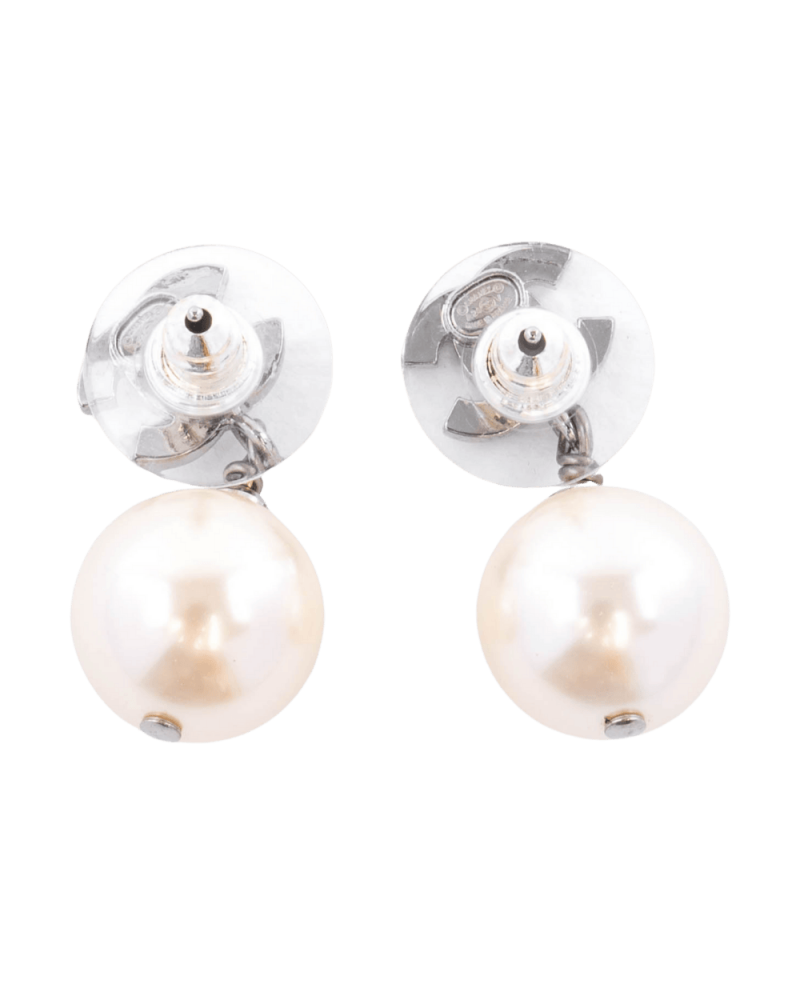 NEW CHANEL EARRING CC LOGO PEARL 1 CM SILVER CRYSTAL SHW